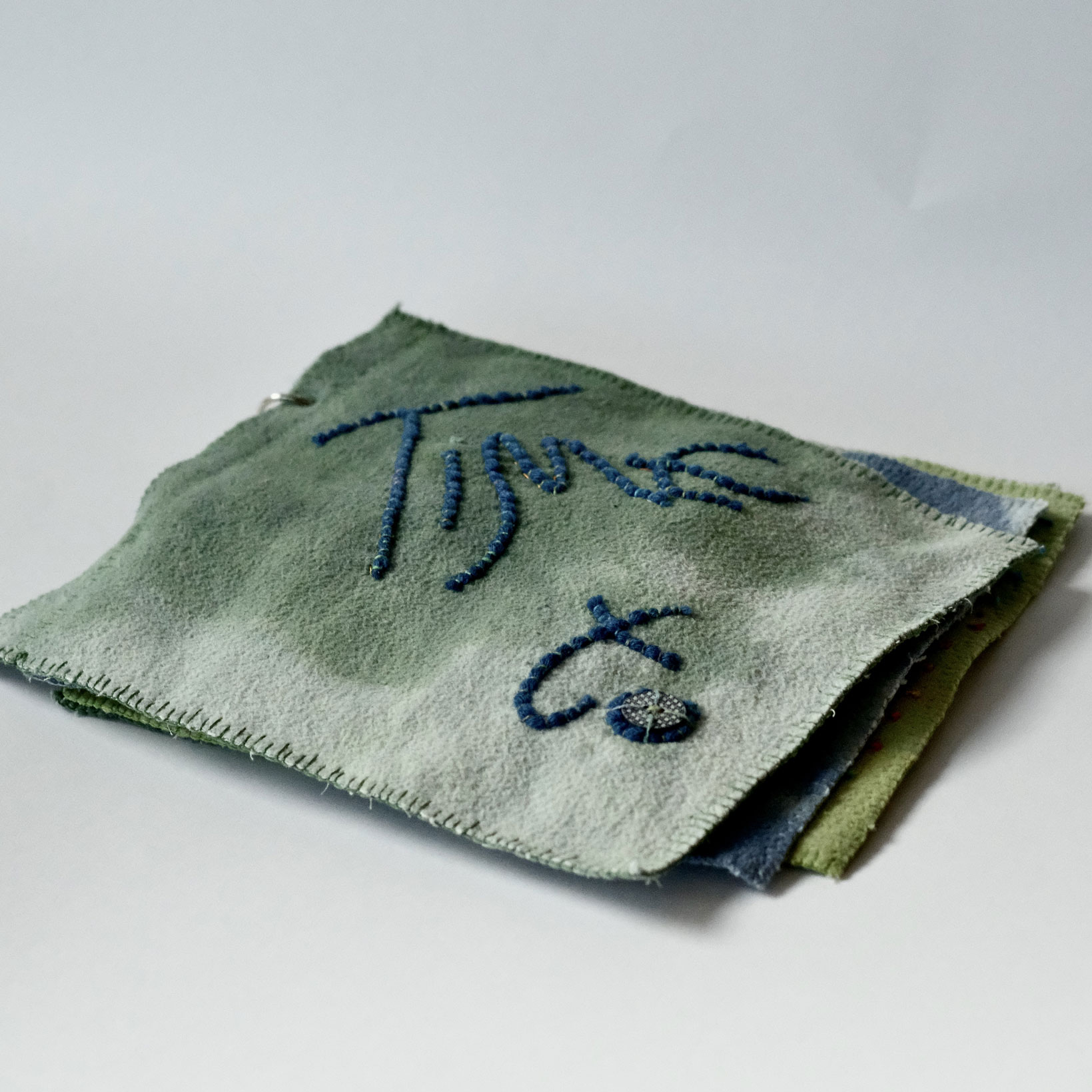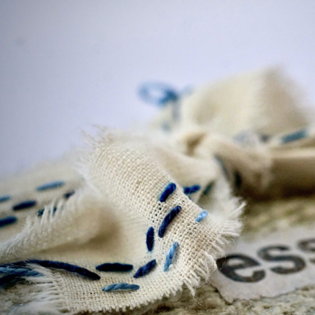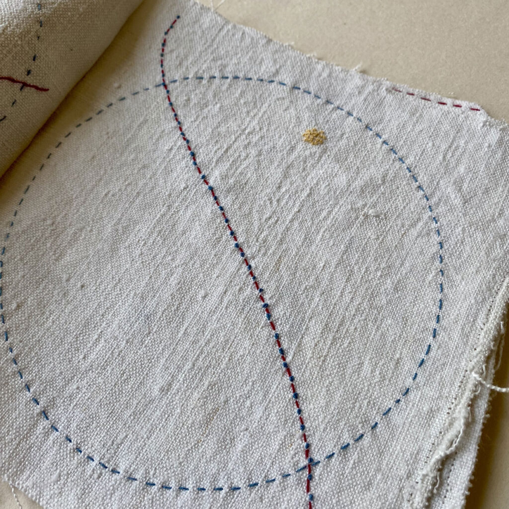 libro tessile, ricamo a mano su mollettone tinto a mano
