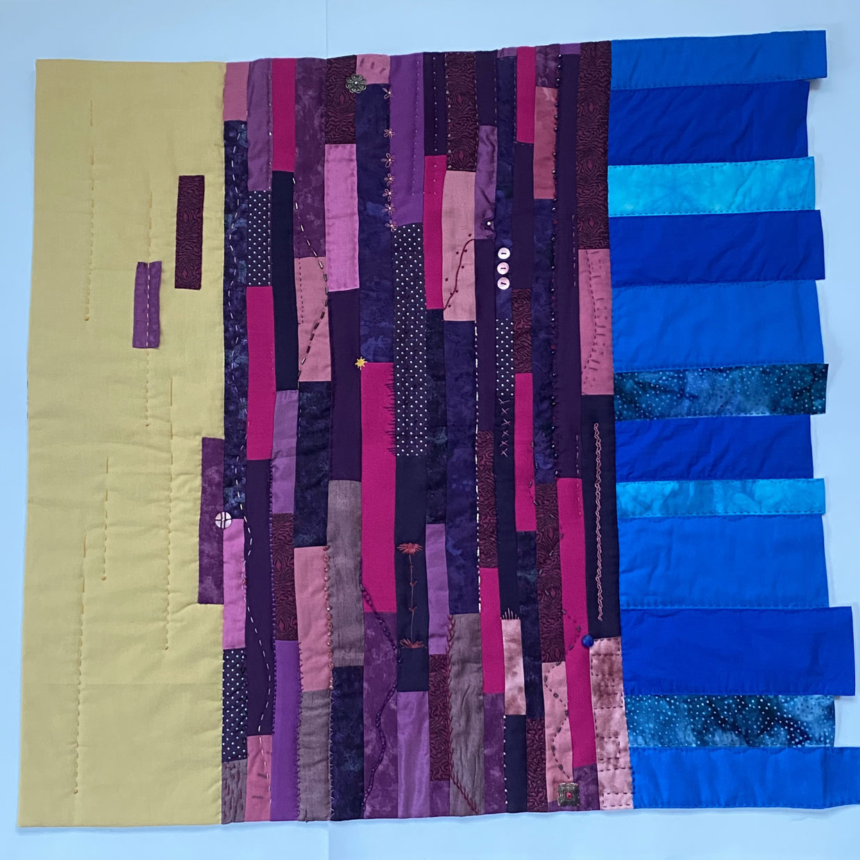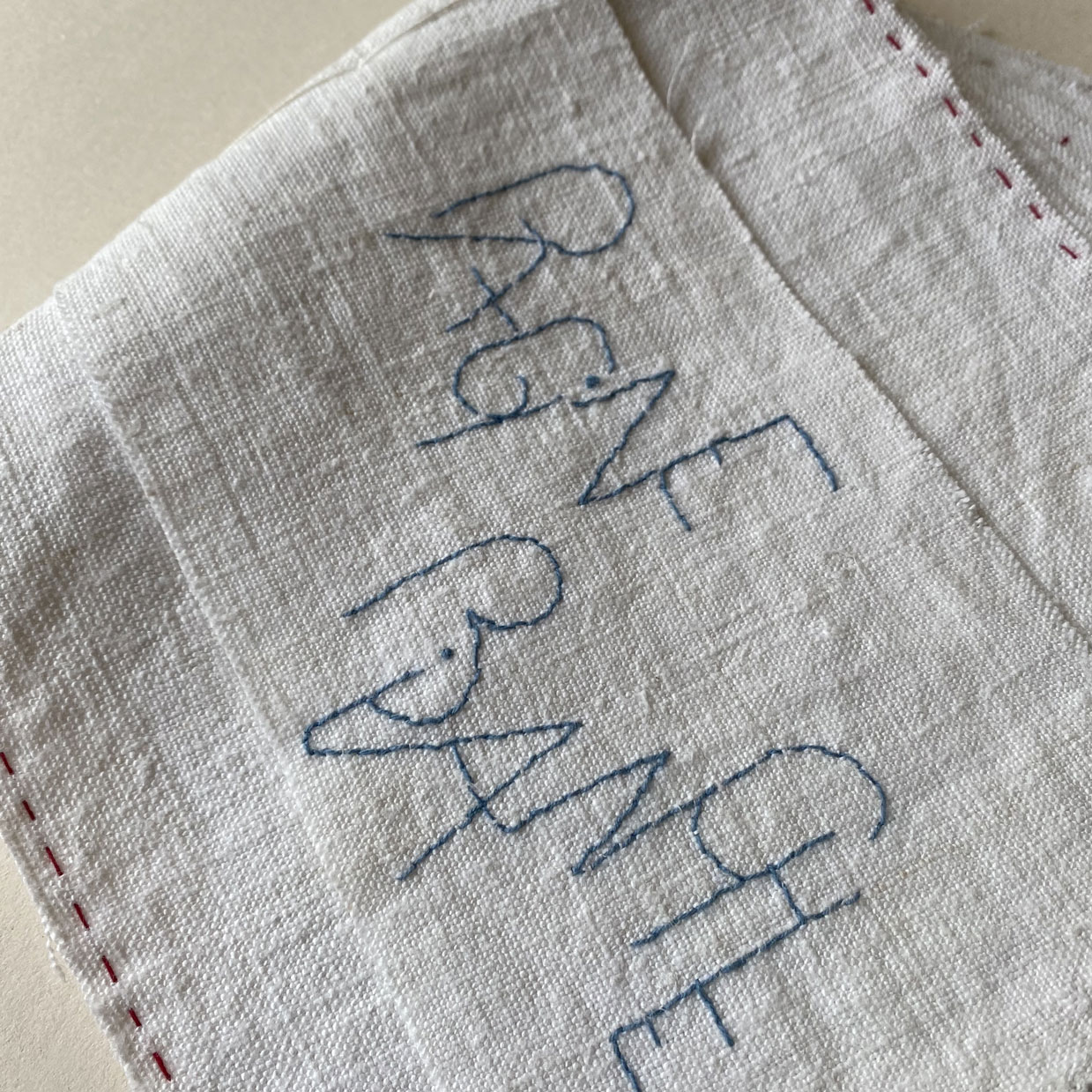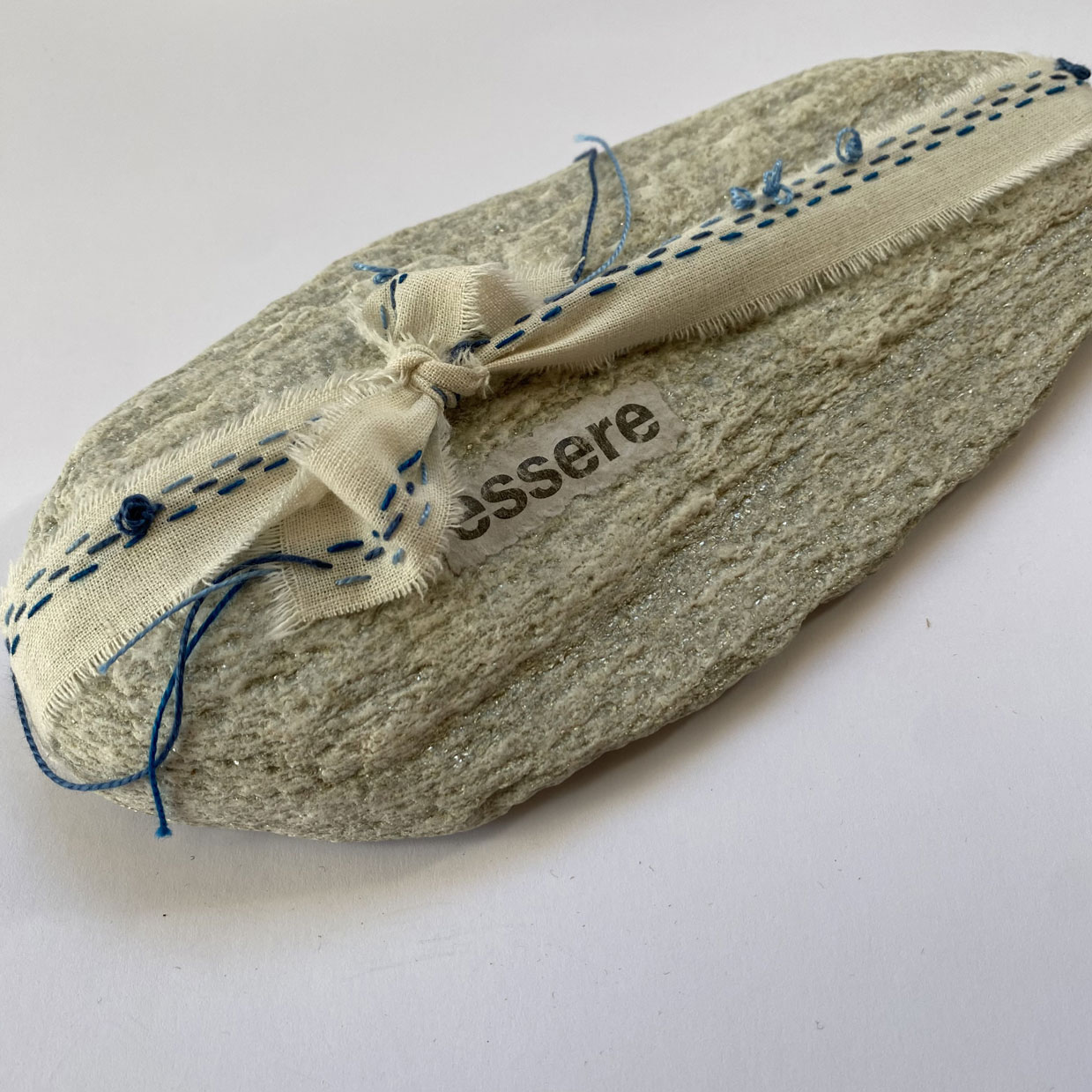 libro tessile, ricamo a mano su mollettone tinto a mano