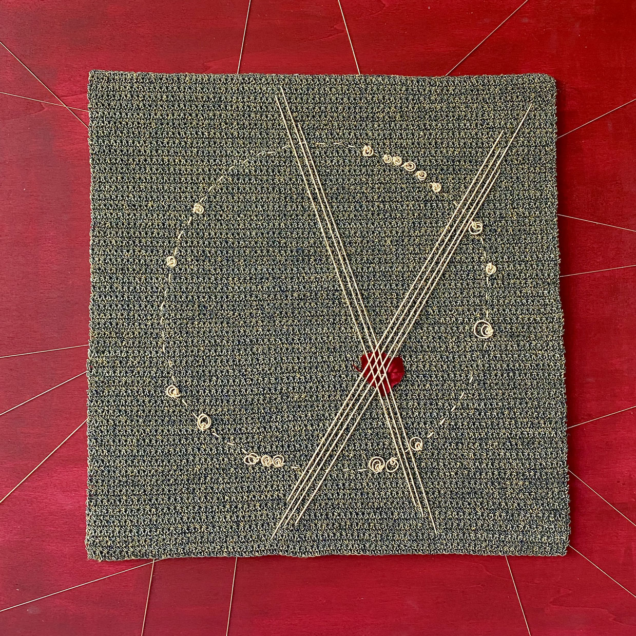 50×50 cm, uncinetto tessitura e ricamo, su legno